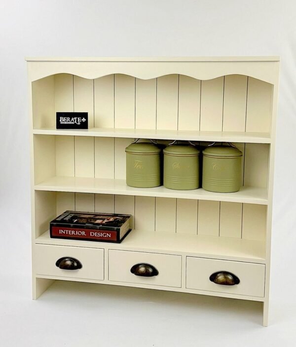 ארונית וינטג' בצבע שמנת בעלת שלושה מדפים ושלוש מגירות קטנות ושלושה מתלים הכי פרקטי ועיצובי שיכול להיות!