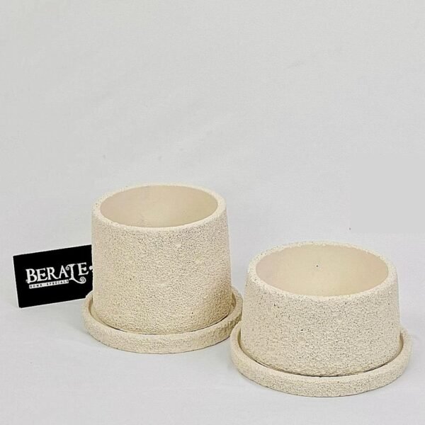 עציץ במרקם טבעי לבן הימני, מגיע עם צלחת מתאימה וחור בתחתית| מידות: 7/13