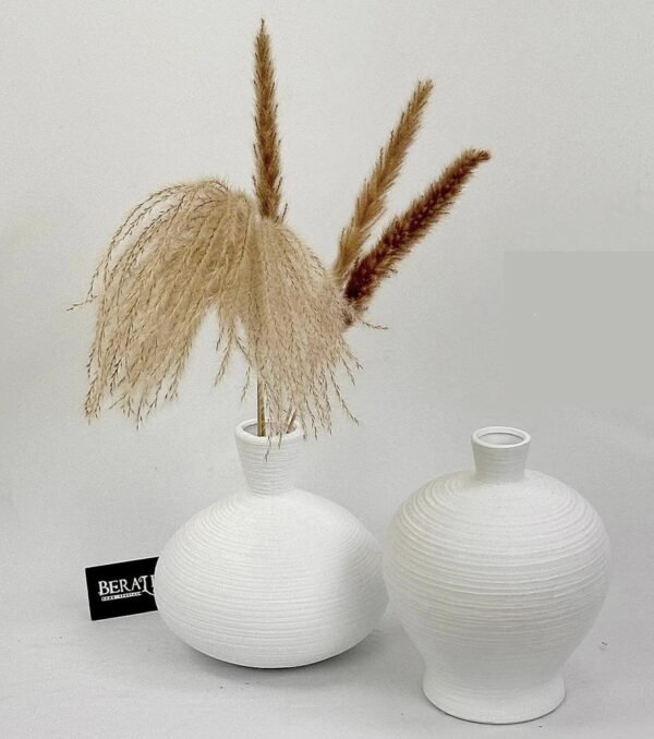 כד מחוספס בצבע לבן עם פיה צרה השמאלי בתמונה (יחידה אחת מהסט)