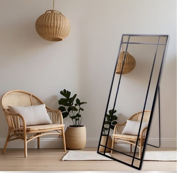 מראת חלון שחורה עם מעמד רצפתי מובנה או אפשרות לתלייה מה שתראו לנכון