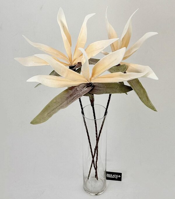 סט 6 פרח דקורטיבי בהשראת Bird of Paradise בעיצוב ייחודי עם עלי כותרת ארוכים, מחודדים ואלגנטיים בגווני שמנת-אפרסק. הצורה הדרמטית והפתוחה של הפרח מעניקה תחושת תנועה ויוקרה, והעלים הירוקים הרחבים משלימים את המראה הטבעי והמרשים. מידות:115 ס"מ