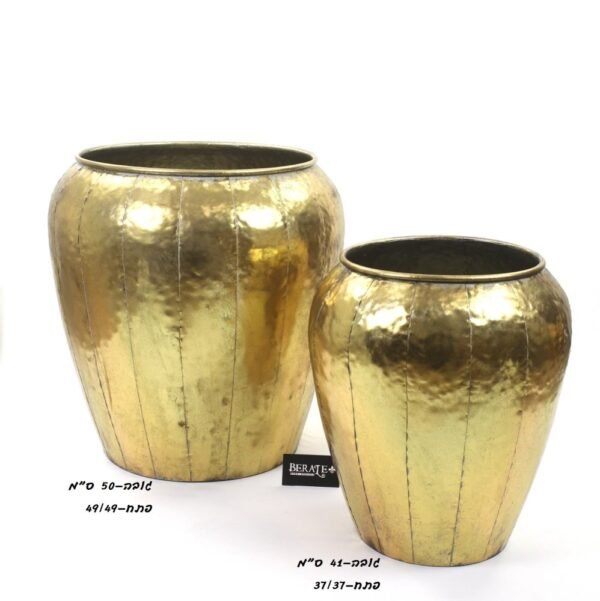 סט 2 כדי ענק עשוי מתכת מוזהבת מגיע עם פלסטיק פנימי לשתילה מידות: הגבוה: 50/49 הגובה פחות: 41/37