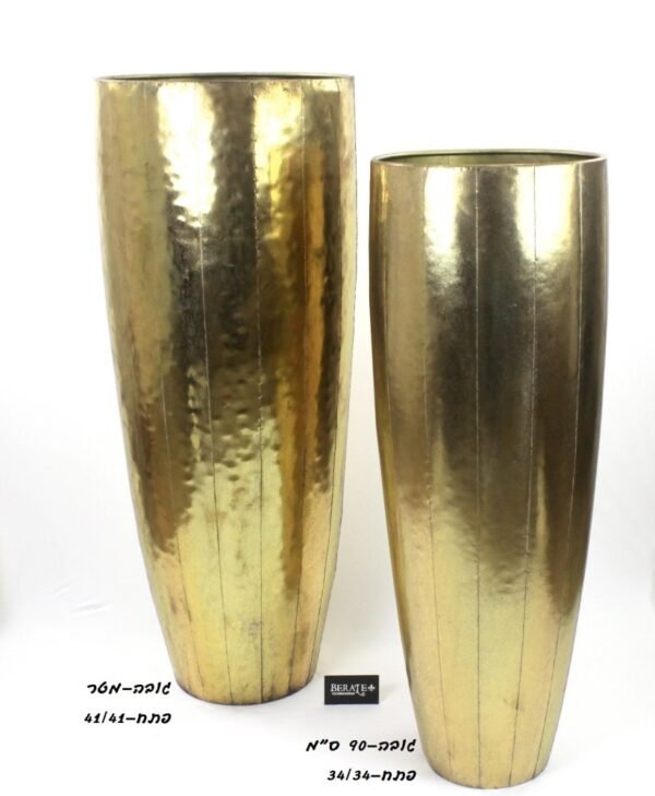 סט 2 כדי ענק עשוי מתכת מוזהבת מגיע עם פלסטיק פנימי לשתילה מידות: הגבוה: 100/41 הגובה פחות: 90/34