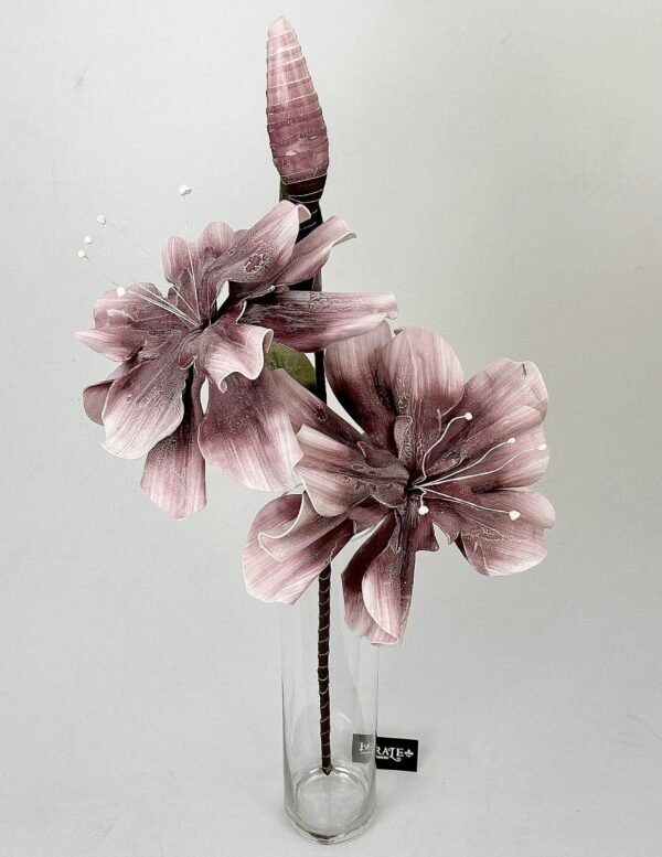 אלגנטיות פראית בגוון עמוק. סט ענפי פרחים המדמה את פריחת ההיביסקוס האקזוטית במראה אורגני וחשוף. השילוב בין הפרחים הפתוחים בעלי האבקנים הבולטים לניצן הזקוף בגוון סגלגל-מעושן מעניק לכל אגרטל נוכחות פיסולית, חמימות וסטייל יוקרתי ומתוחכם. (סט 6 יחידות). מידות: 105 ס"מ