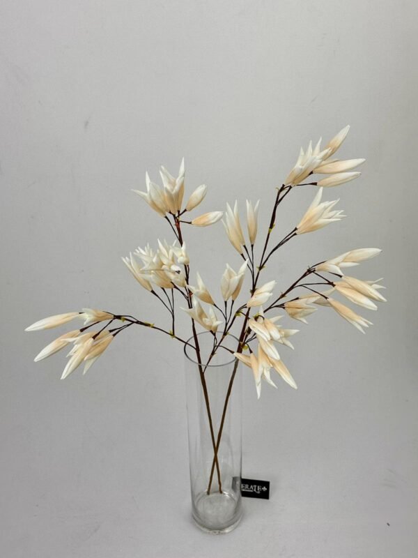 עדינות מתפרצת מהטבע. סט ענפי פריחה המדמים את ניצני היסמין במראה אורגני ופראי. ריבוי הפיצולים והניצנים המוארכים מעניקים לכל סידור נפח אוורירי, תנועה וסטייל יוקרתי ומעודן, ללא צורך בתחזוקה. (סט 6 יחידות). מידות: 100 ס"מ