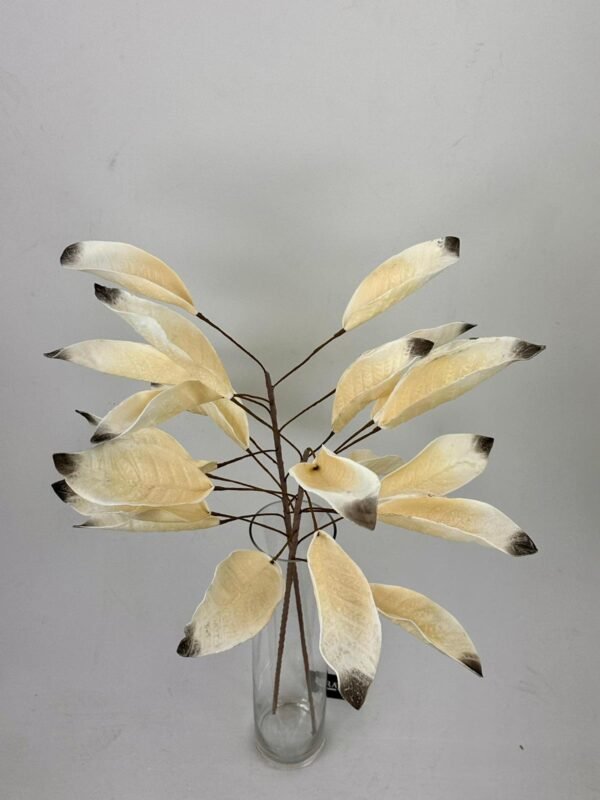 דרמה אורגנית במיטבה. סט ענפי עלווה פיסוליים המדמים את עלי הפיקוס במראה חשוף, עם גימור כהה וייחודי בקצוות העלים המעניק עומק וטקסטורה. פריט עיצובי דומיננטי המוסיף תחכום וסטייל מודרני לכל אגרטל וחלל מעוצב. (סט 6 יחידות).