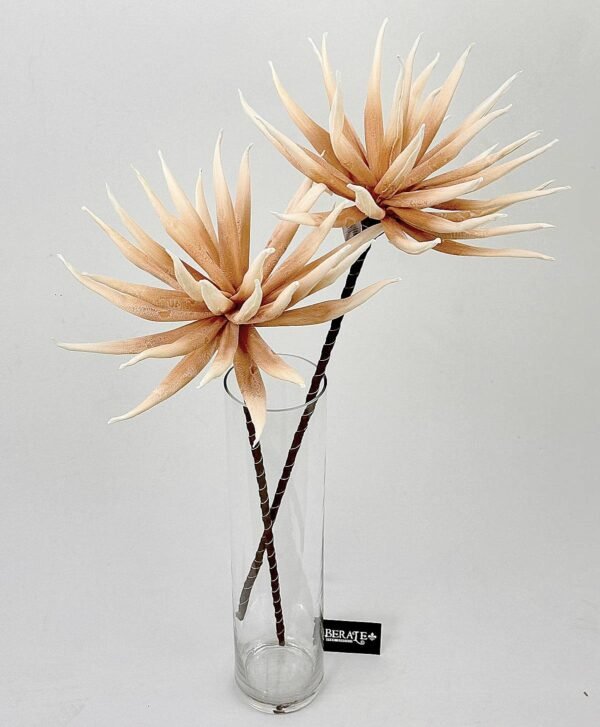דגם Spider Mum מרהיב בגווני שמנת-אפרסק עם הדגשות קפה עשירות. עלי הכותרת הצרים והארוכים נפתחים כלפי חוץ ויוצרים מראה דינמי, מודרני ובולט. הדגם הזה מושלם למי שרוצה פרח מיוחד שמכניס סטייל ואופי לחלל.