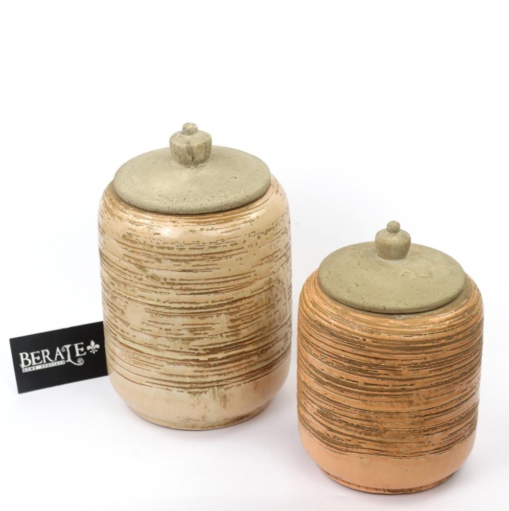כד בסגנון עתיק, בצבע חמרה מוברש בעל מכסה מעוצב (יחידה אחת מהסט הכד השמאלי)