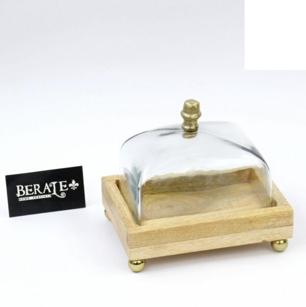 פעמון מאפים עשוי עץ עם מכסה זכוכית עם ידית זהב