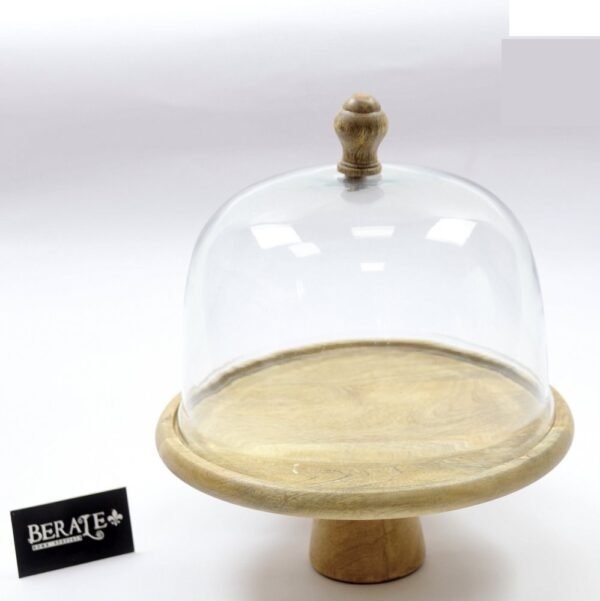 פעמון עוגה על רגל עשוי מעץ בעל מכסה זכוכית