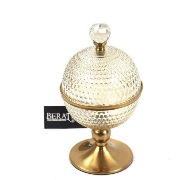 צנצנת בצבע זהב עם זכוכית בעיצוב אלקטרוני מידות: 31/15 *ללא איטום