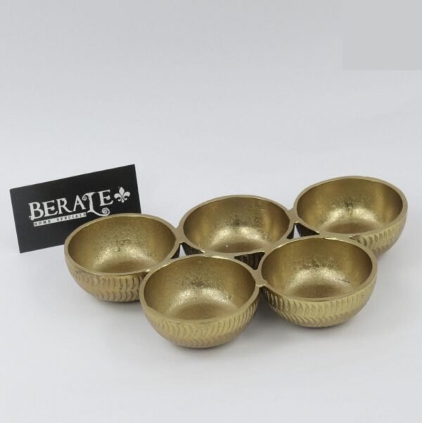 קעריות הגשה עשויות בראס מחוברות בצבע זהב מוברש מידות:24/14