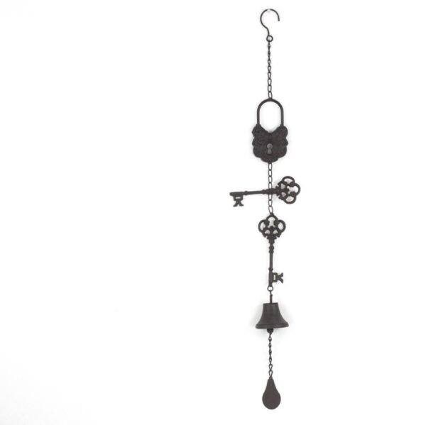 מובייל בצבע נחושת נתלה, עם מפתח מנעול ופעמון